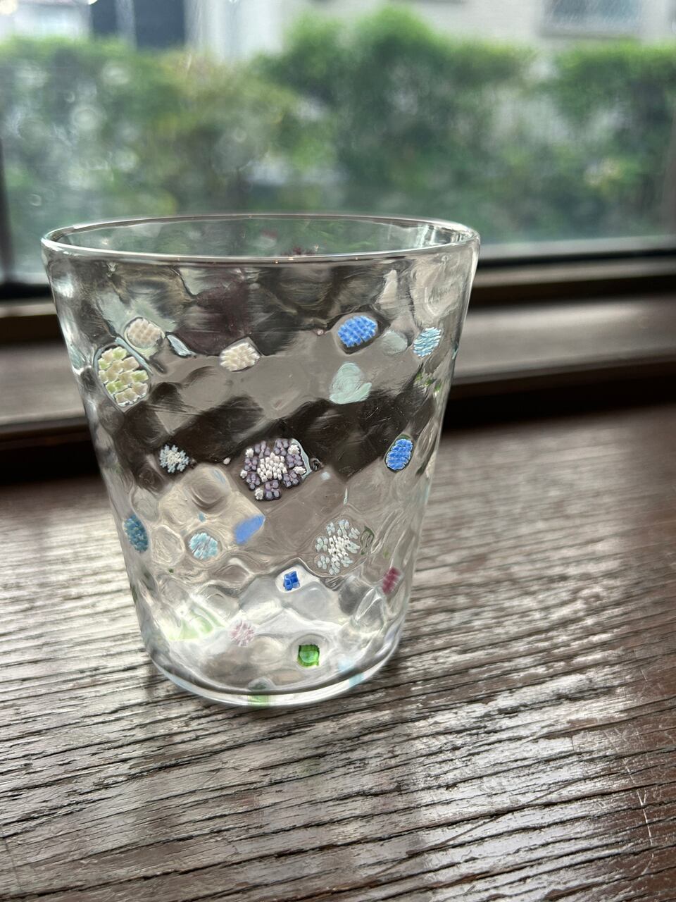 本品は切り出したガラス片を緻密に並べて高温で繋げ、グラスに成形しております。