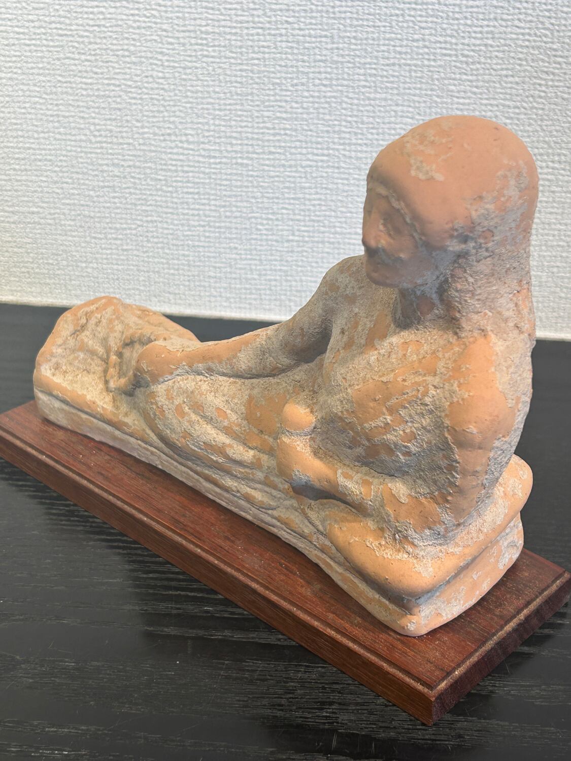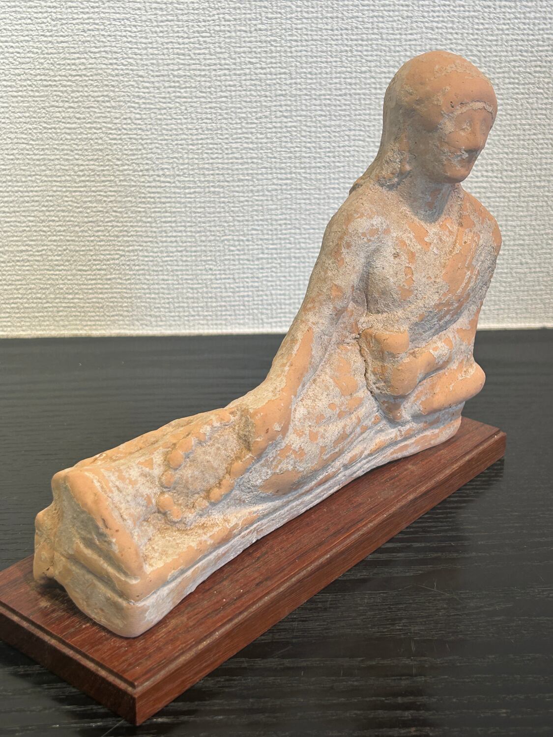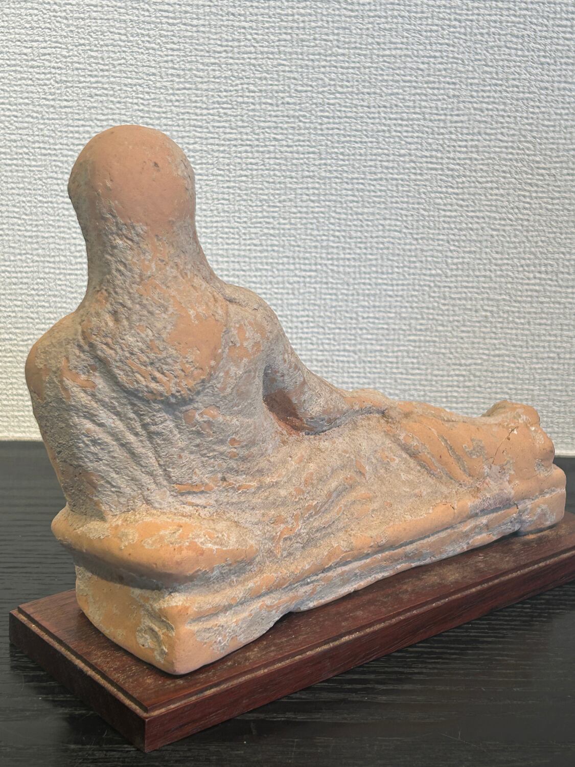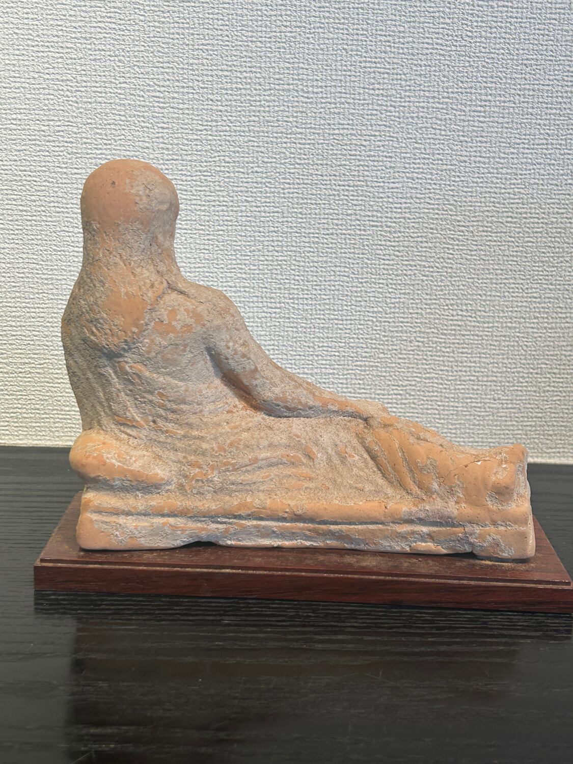 紀元前5世紀頃のギリシャ期、北イタリアエトルリア出土のテラコッタ製婦人像です。この寝姿の像はギリシャ文化独特のもので、ギリシャ文化圏の様々な地域でみられます。