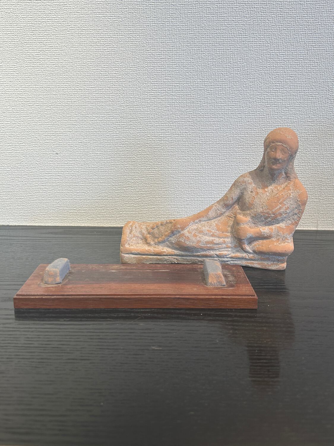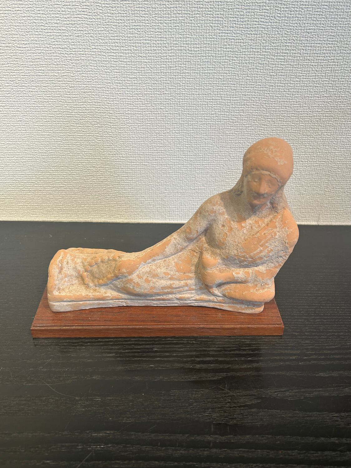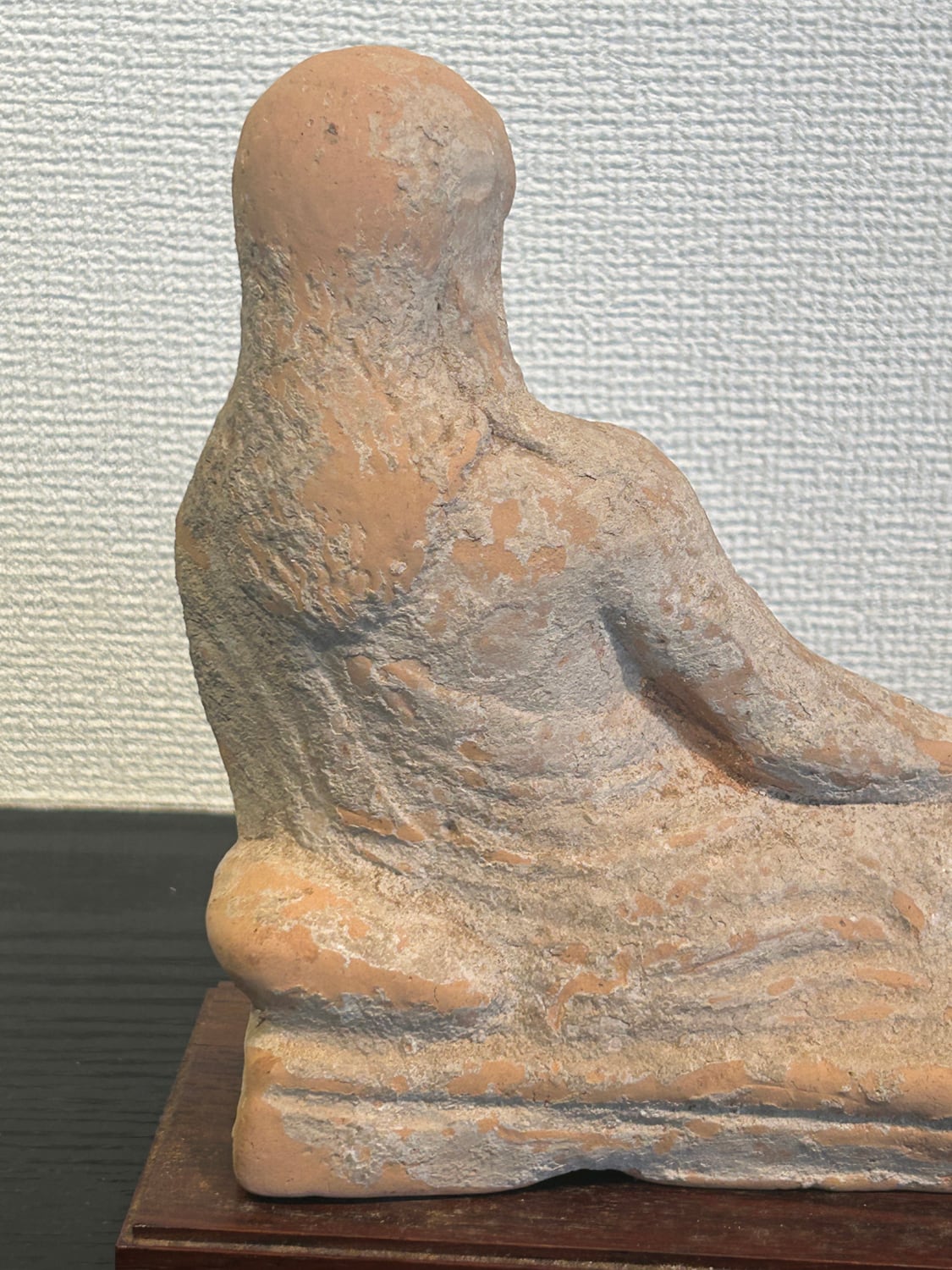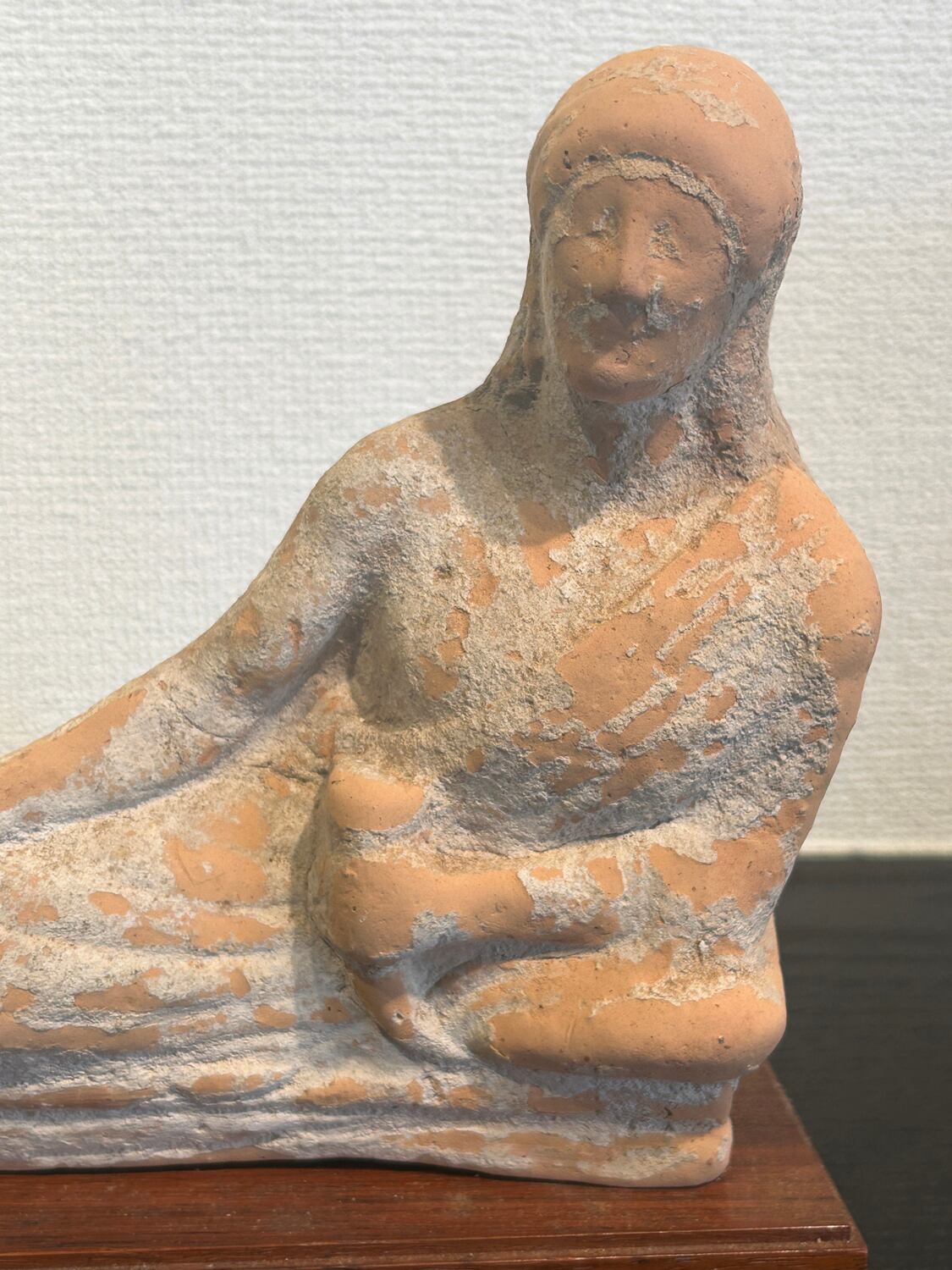 紀元前5世紀頃のギリシャ期、北イタリアエトルリア出土のテラコッタ製婦人像です。この寝姿の像はギリシャ文化独特のもので、ギリシャ文化圏の様々な地域でみられます。